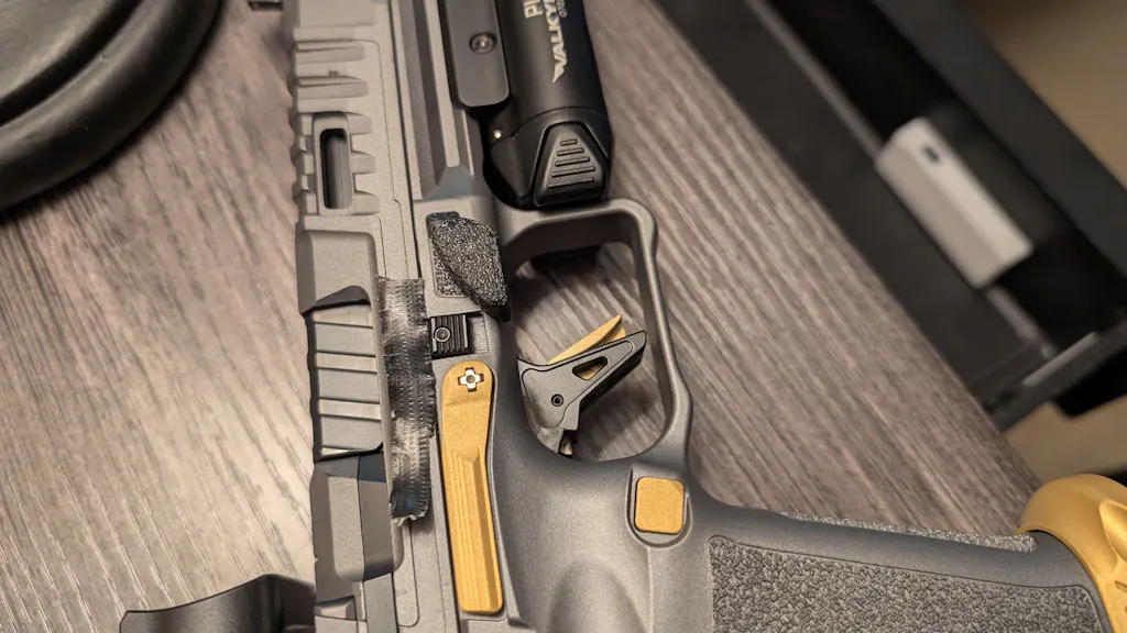 The Calloway designs TP9 Thumb Rest allows shooters to drastically reduce both felt and visual recoil.